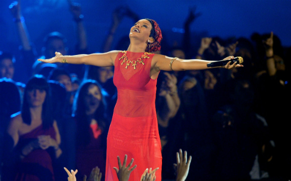 RiRi também brilhou no palco, fazendo a primeira apresentação da noite. Demi Lovato (no pré-show), One Direction, Frank ocean, Green Day e Taylor Swift (que fechou a premiação), também se apresentaram no palco do VMA.