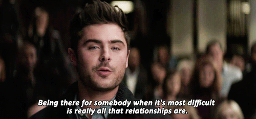 E se algo de ruim acontecer, é claro. Não estamos te mandando energias negativas (risos), mas a gente sabe que a vida não é só arco-íris, unicórnio e sorvete. “Estar lá quando a pessoa mais precisa de você é tudo o que se baseia um relacionamento”, diz Ellie (Imogen Poots) para Jason (Zac Efron) no filme Namoro ou Liberdade. É isso, sabe? Além de química e interesse, é preciso haver apoio. Esses são três itens essenciais para se montar o pacote completo do amor.