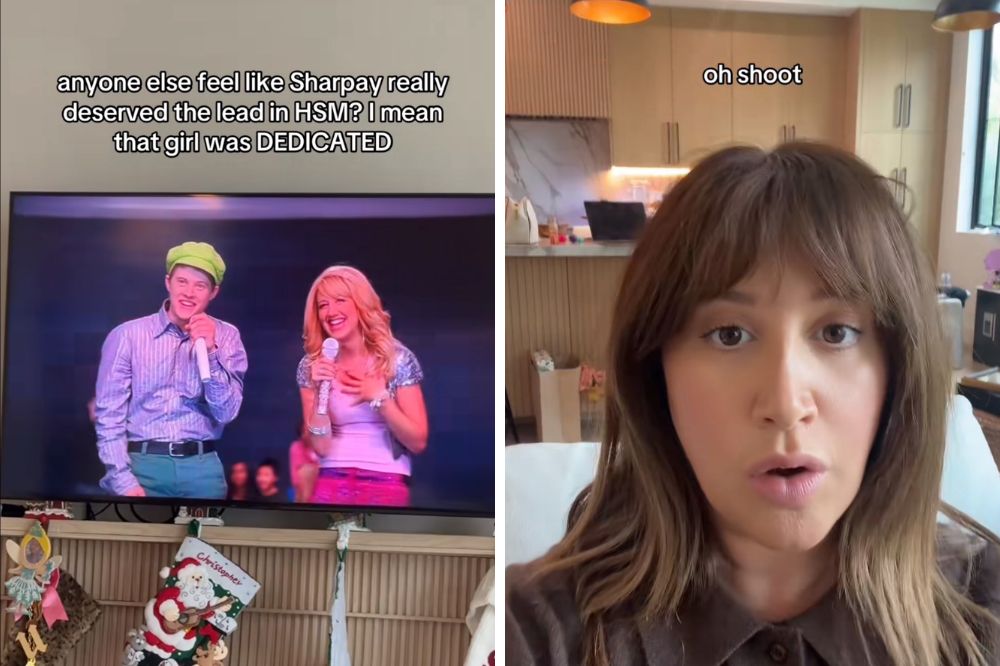 Por cima da imagem, ela escreve, à favor de Sharpay “anyone else feels like Sharpay really deserved the lead in HSM? I mean that girl was DEDICATED” (“mais alguém sente que a Sharpay realmente merecia ter sido a protagonista? Sabe, aquela menina era DEDICADA”, em tradução livre). Após alguns segundos, descobrimos que a autora da frase e dono desse pensamento é a própria atriz, que se assusta e fecha a câmera rapidamente.
