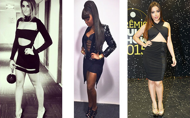 Pretinhos básicos – e poderosos! A apresentadora Rafa Brites usou um vestido de gola alta todo recortado e finalizou a produção com uma clutch metalizada. Ludmilla apostou no body com transparências junto com a saia básica e se jogou no brilho do blazer todo bordado. Anitta divou no Dolce & Gabbana transpassado no peito – para completar, sandália dourada.