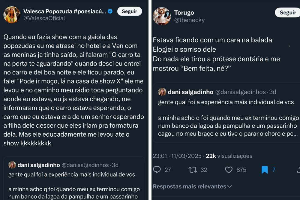 Trend mostra que cada um viveu, no mínimo, uma experiência única, singular e bizarra na vida e convida a galera a rir das próprias histórias